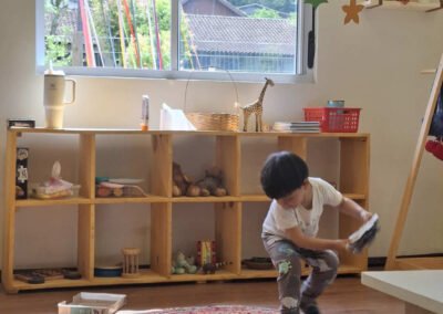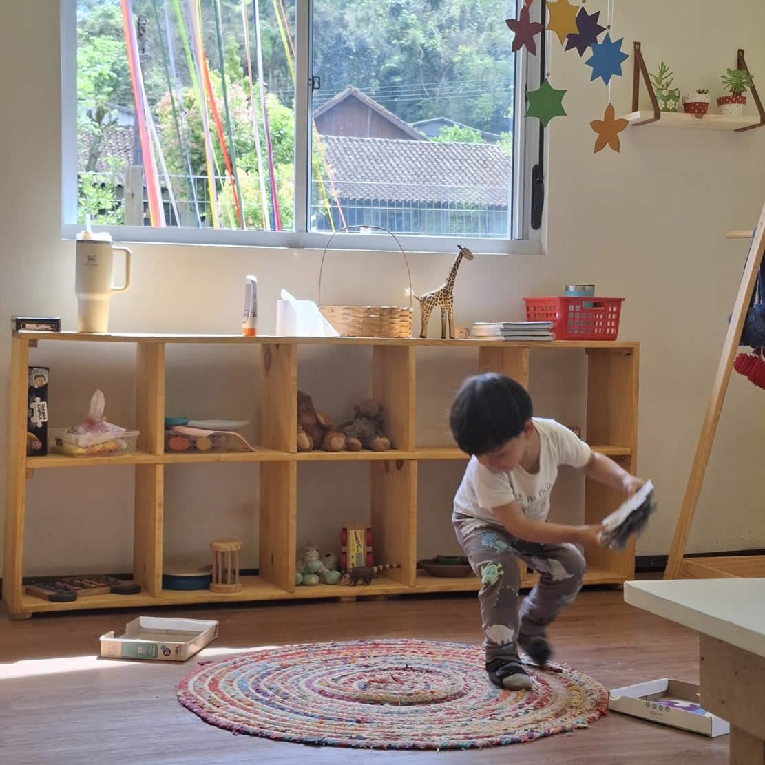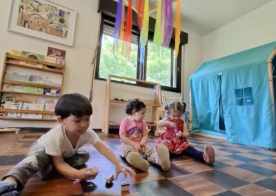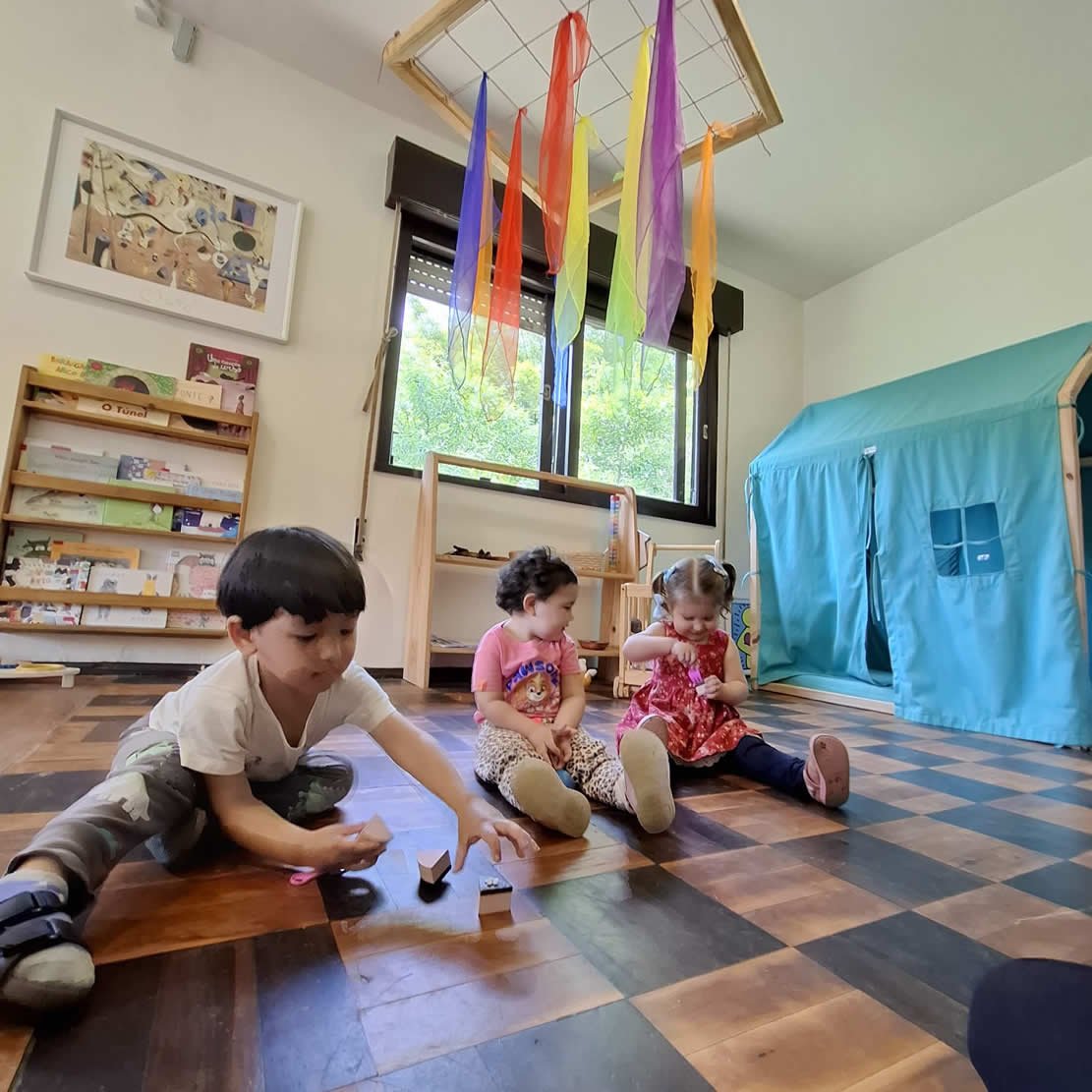 Os ambientes são intencionalmente preparados para favorecer autonomia, segurança afetiva e múltiplas linguagens, com materiais acessíveis, circulação livre e convites ao encontro.